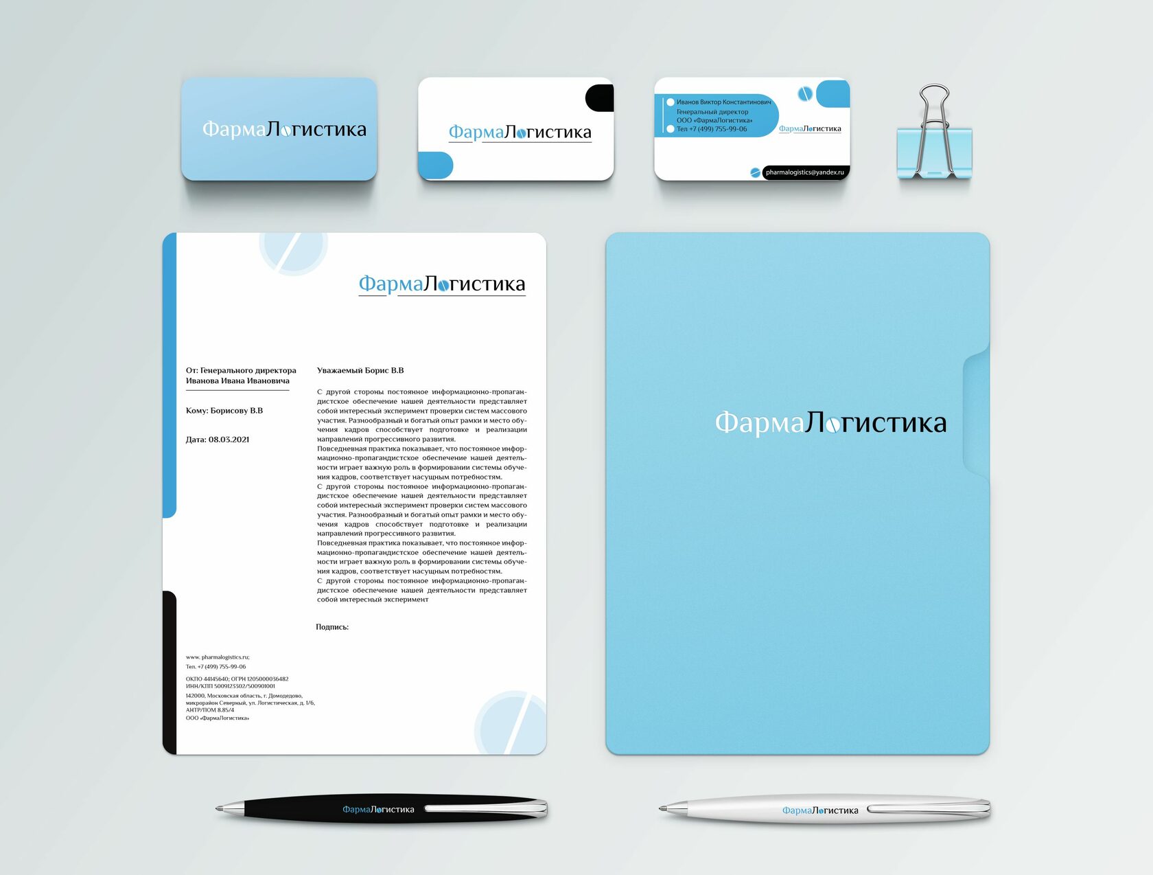 Разработать фирменный стиль фармацевтической компании. Цвета должны ассоциироваться с перевозкой и лекарствами, а сам дизайн должен быть легким и отражать сферу деятельности компании.